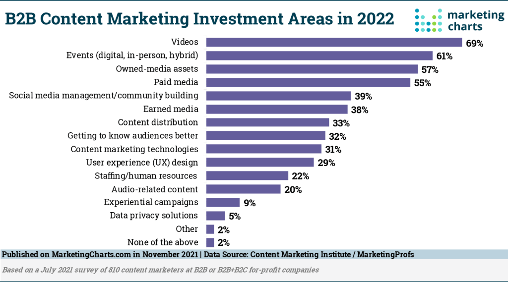 Secondo un’indagine condotta da Marketing Charts nel Luglio 2021, la parola d’ordine del 2022 sarà nuovamente “contenuti”.